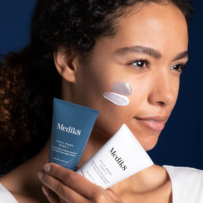 Allow to absorb for a few minutes then gently massage another almond-sized amount of Step 2 of H.E.O. Mask into the same areas. Leave on overnight.